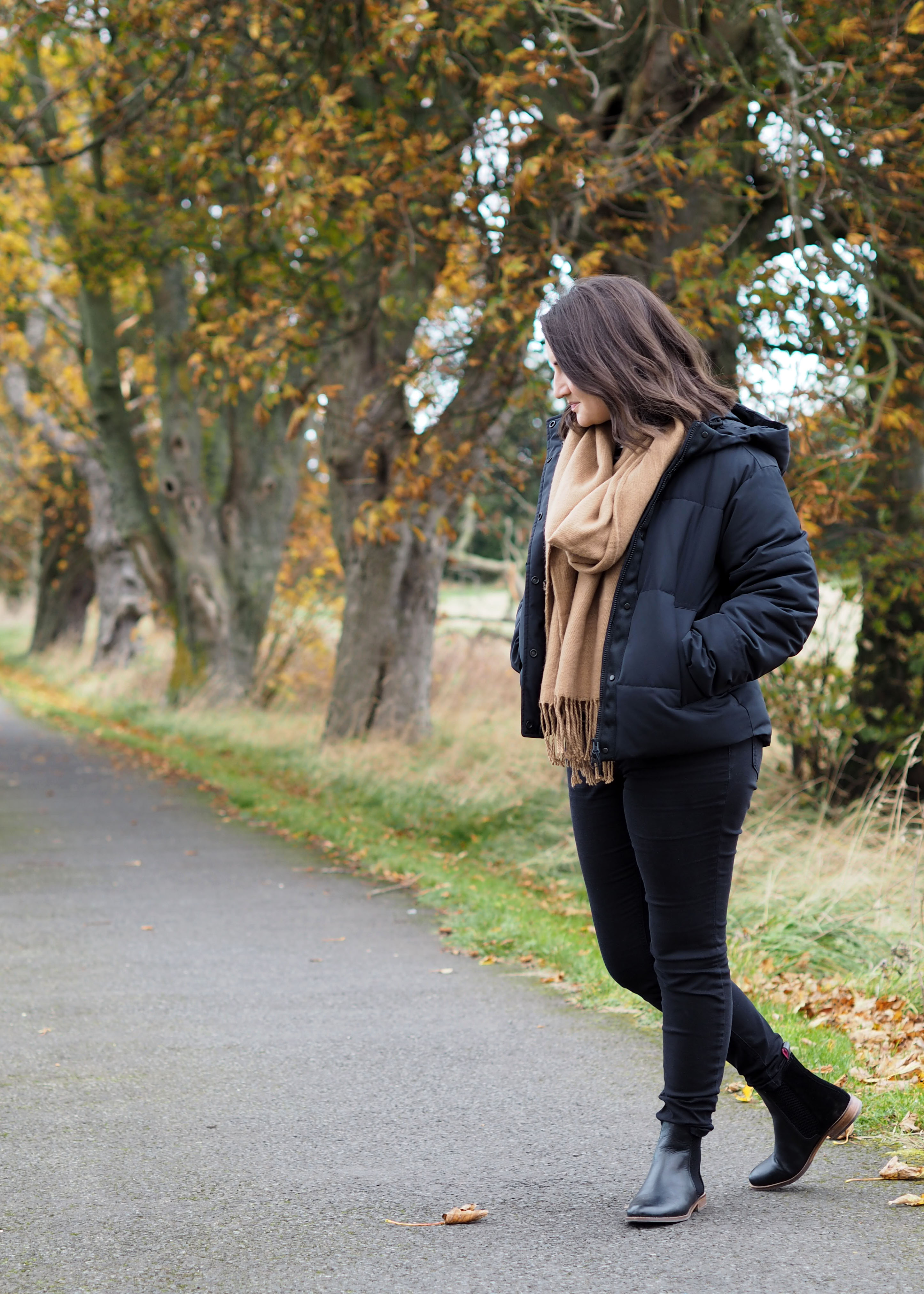I can’t comment too much on the warmth of the puffer yet as the temperature here is still around 10oC. But it feels like it should be able to handle pretty cold temperatures. Layering up with cosy knits, a hat and scarf this should keep you warm on most winter days. I love that the pockets are fleece lined (perfect for people like me with their hands in their pockets all the time) and have a zip closure. This gives the option of throwing your phone and money in your pocket and leaving your bag at home. There is also an inside pocket for anything you want to keep secure.